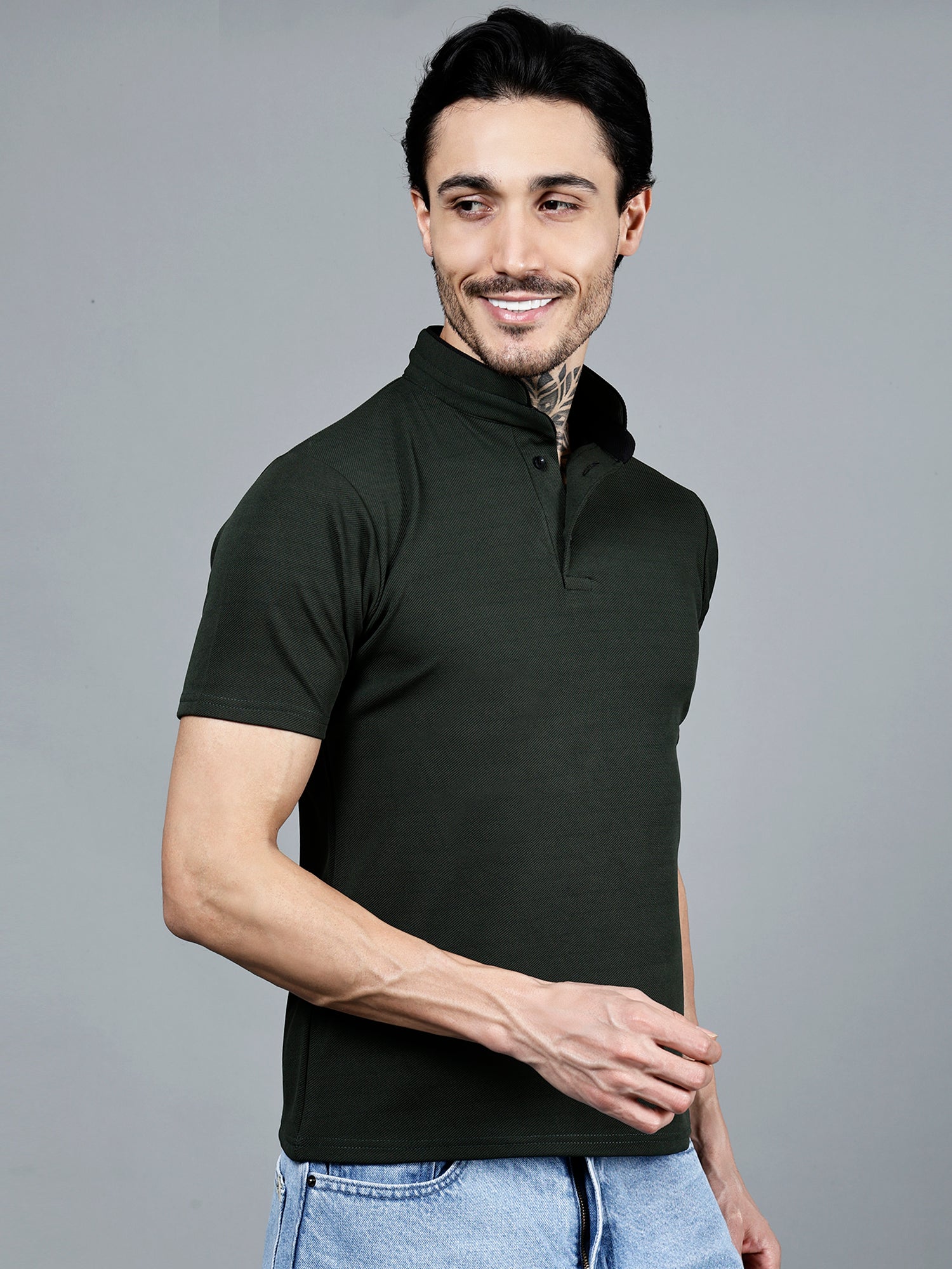 Get a cool and comfy look with this stylish Mandarin Collar for man T-Shirt. Fashion simple solid color, this half sleeve T-shirt has both style and grace. With it's Mandarin collar it adds a modern twist and the soft fabric allows for breathability and ease of wear all day. Great for casual wear, coffee dates or just lounging in the house on a lazy weekend.