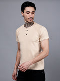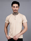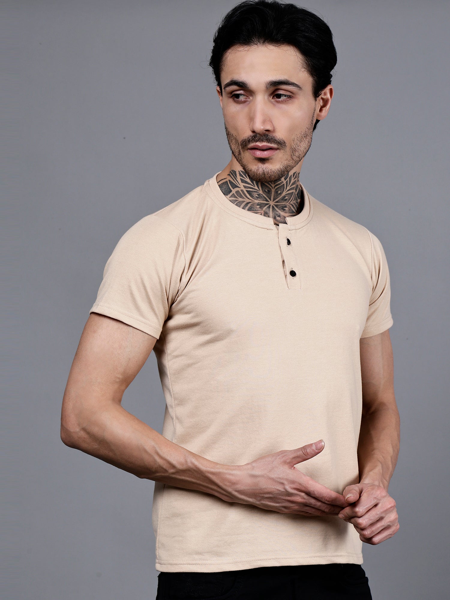Vaijal Men's Casual Slim Fit Half Sleeve Henley Neck Cotton Solid T-shirt
