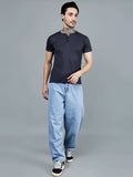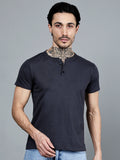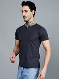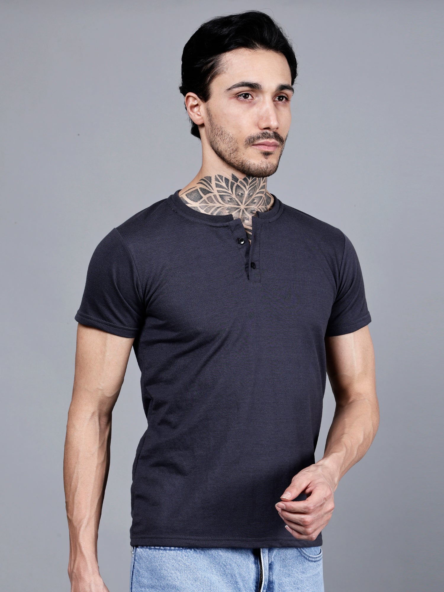 Vaijal Men's Casual Slim Fit Half Sleeve Henley Neck Cotton Solid T-shirt