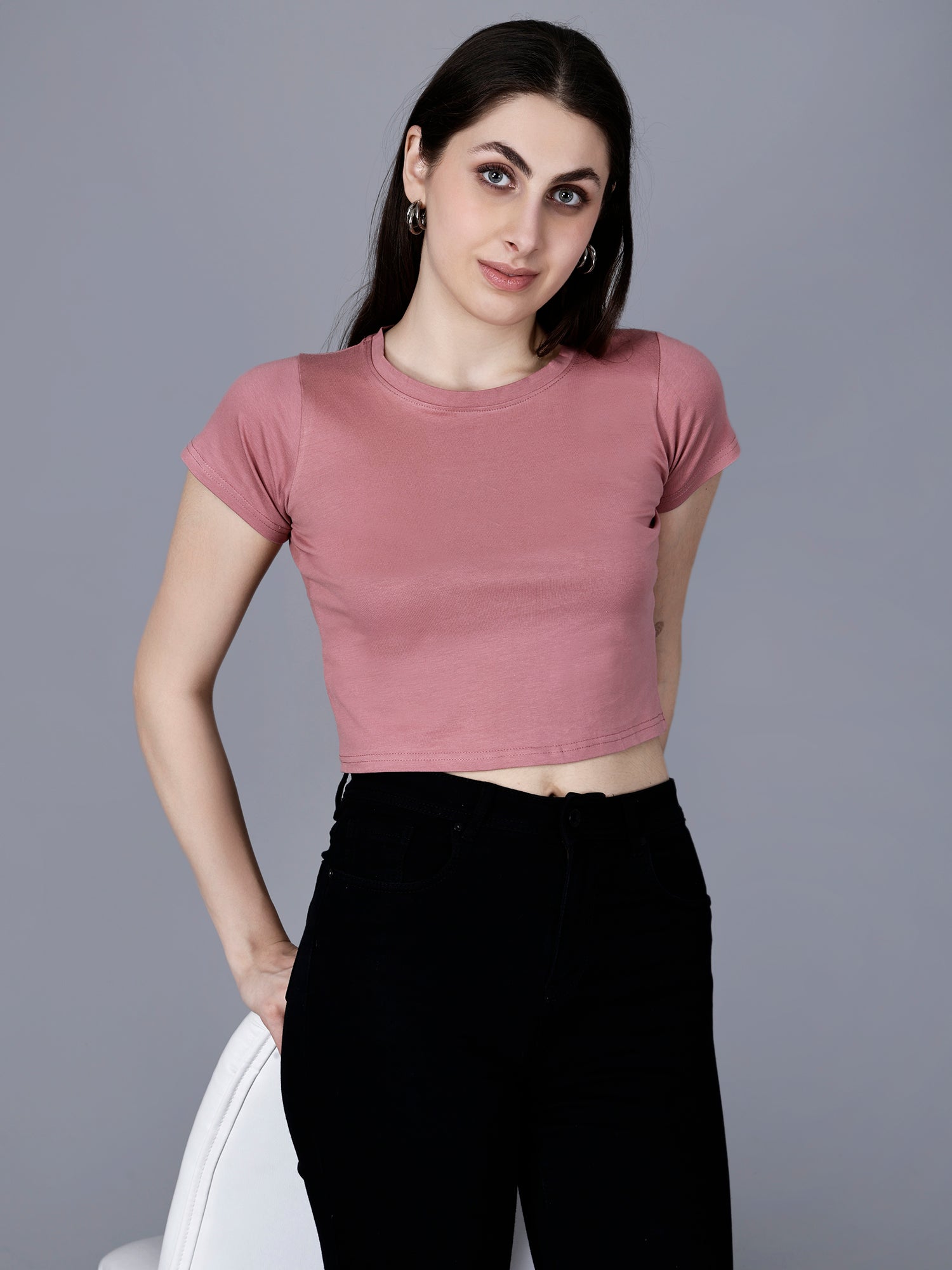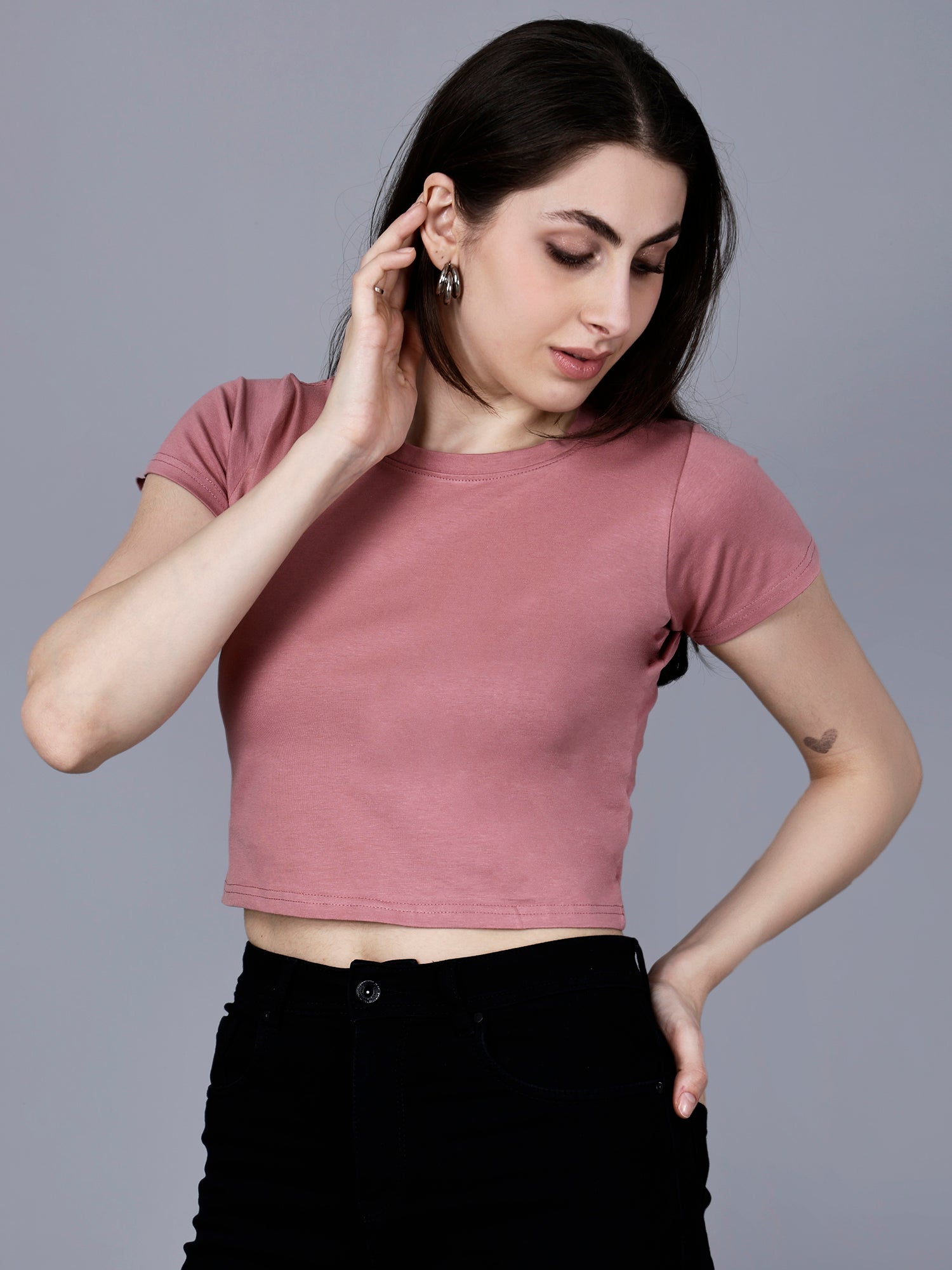 Vaijal Women's Half Sleeve Slim Fit Solid Pure Cotton Crop Top