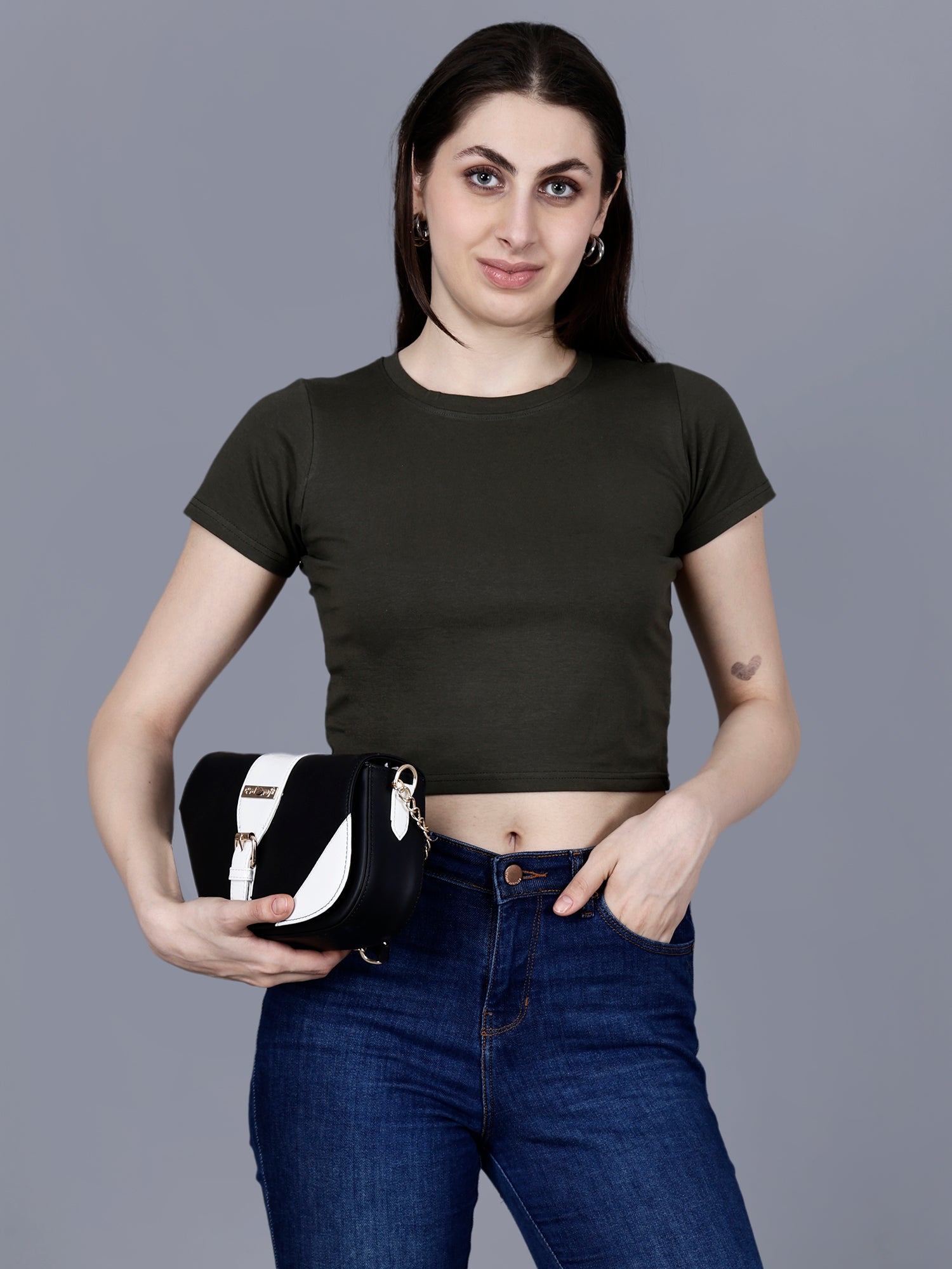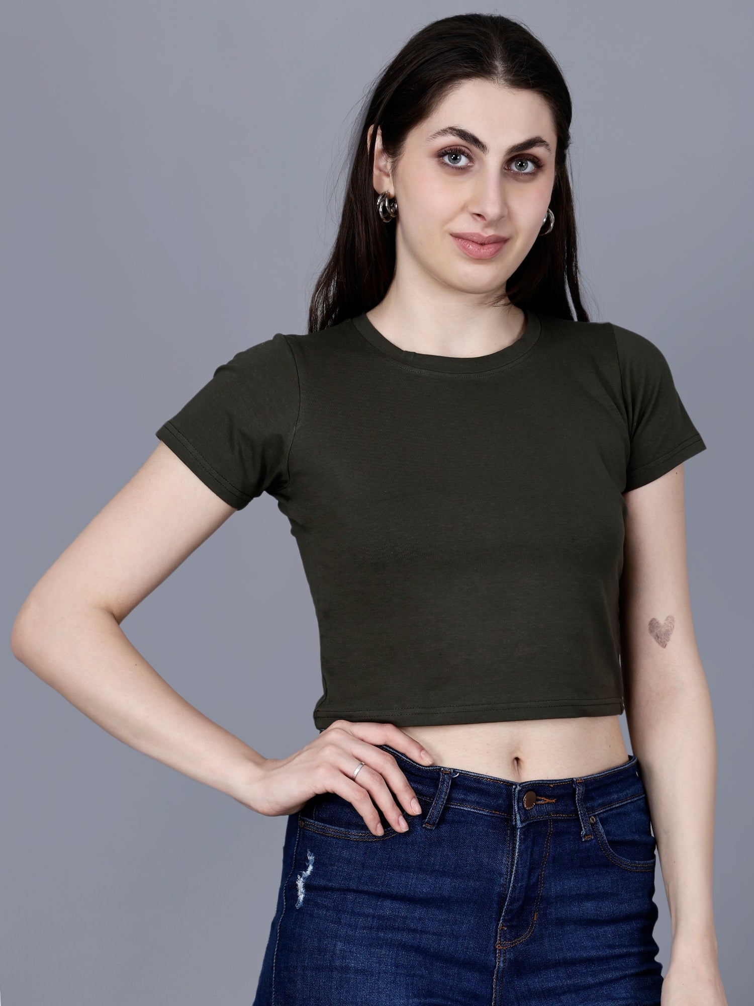 Vaijal Women's Half Sleeve Slim Fit Solid Pure Cotton Crop Top