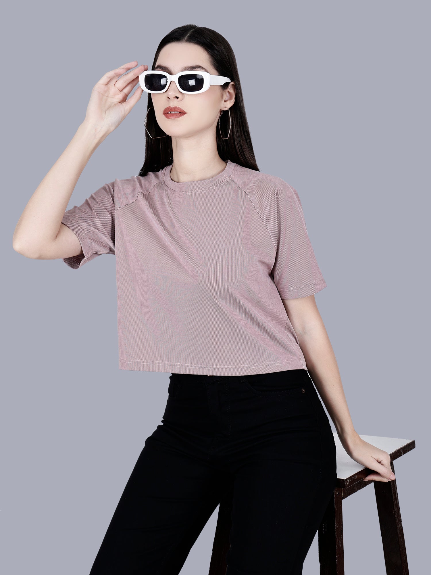 Vaijal Women's Half Sleeve Striped Regular Fit Ribbed Crop Top